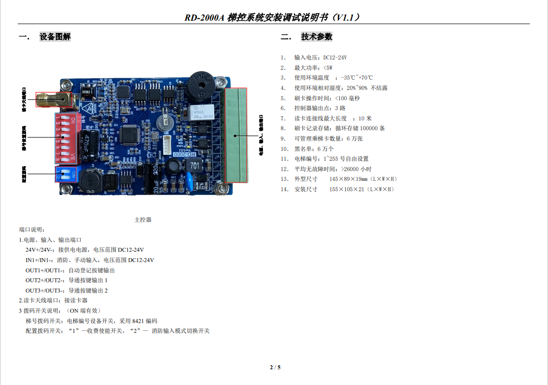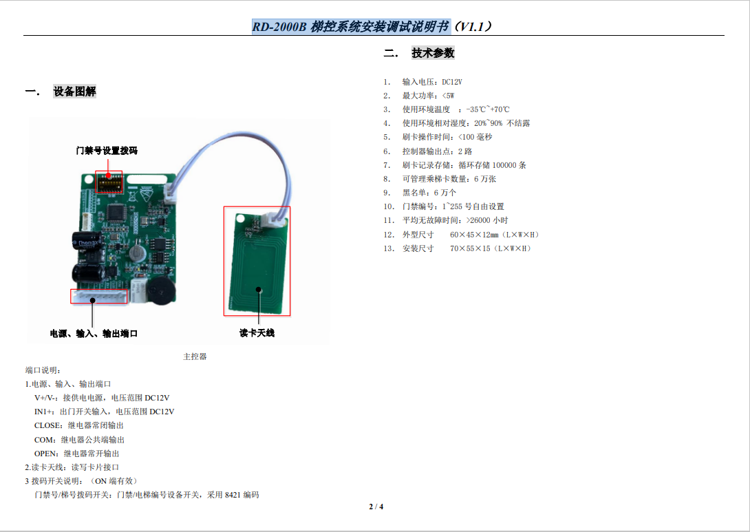 RD-2000A 梯控系統(tǒng)安裝調(diào)試說(shuō)明書(V1.1)